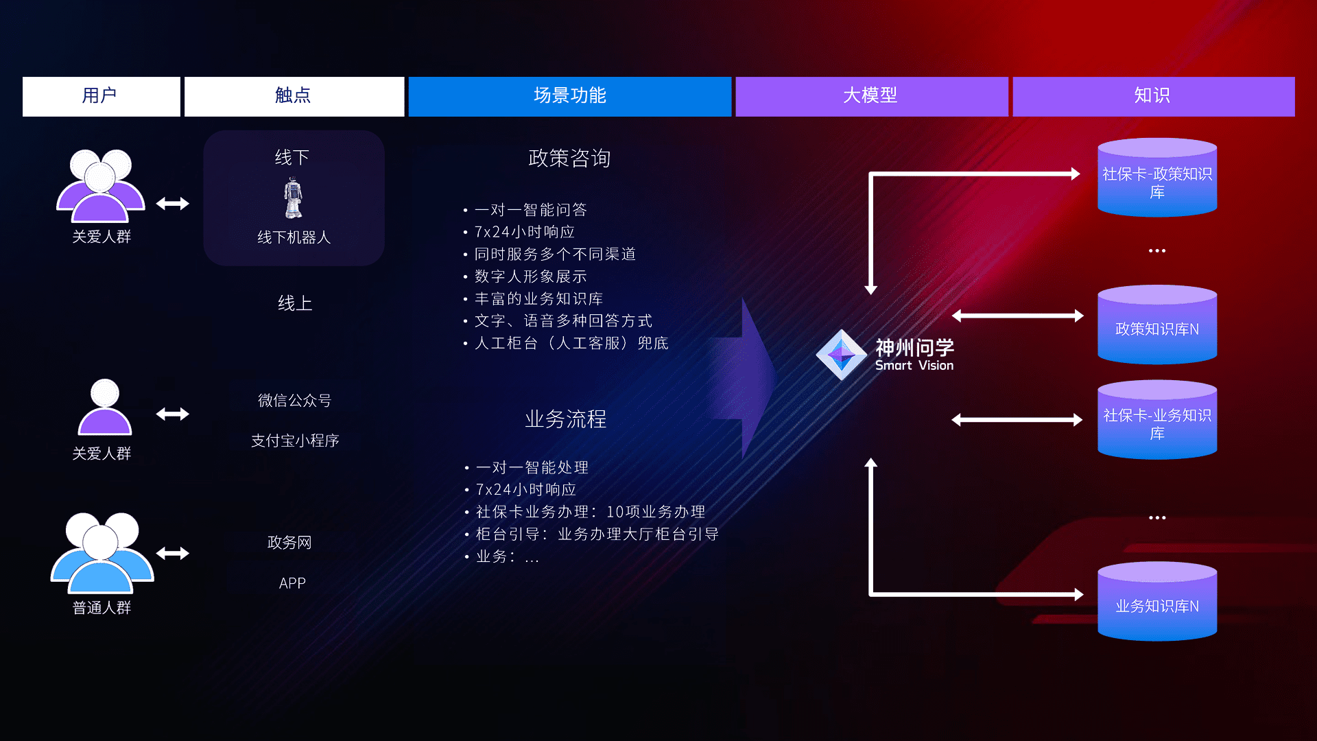 在服务大厅部署客服机器人,,在线上应用和小程序配置客服数字人,,724小时为群众解答常规问题,,,,客服机器人无法处理的,,转现场人工处理。。